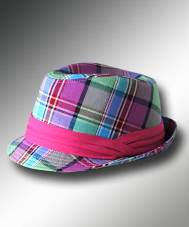Plaid fedora with cotton trim .Also available in Orange. Green and Black AHA 90 568, Fuchsia Sug. Retail $25.00