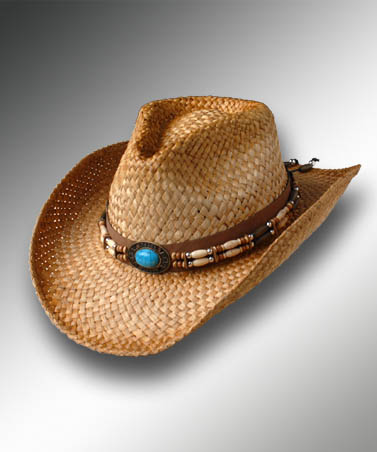 Straw hat with beaded trim (western style ) available as shown AHA 90 1061 Retail $ 38.00